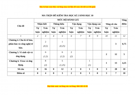 Chương 6. Virus và ứng 8 5 1 1 13 4,25 dụng. (2) (1,25) (1) Số câu 0 16 0 12 2 0 1 0 3 28 10 Điểm số 0 4 0 3 2 0 1 0 3 7 10