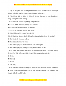 Câu 3: Dựa vào đặc điểm nào sau đây của virus mà người ta có thể sản xuất thuốc