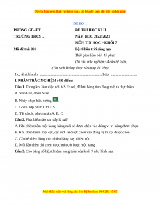 MÔN TIN HỌC – KHỐI 7 Mã đề thi: 001