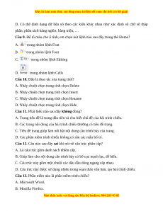 Câu 1. Vị trí giao của một hàng và một cột được gọi là gì? A. Ô B. Trang tính C. Hộp địa chỉ D. Bảng tính.