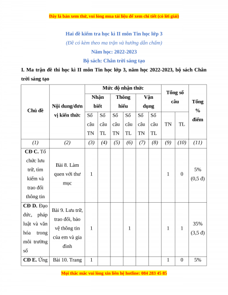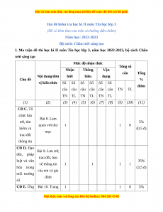 I. Ma trận đề thi học kì II môn Tin học lớp 3, năm học 2022-2023, bộ sách Chân trời sáng tạo