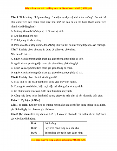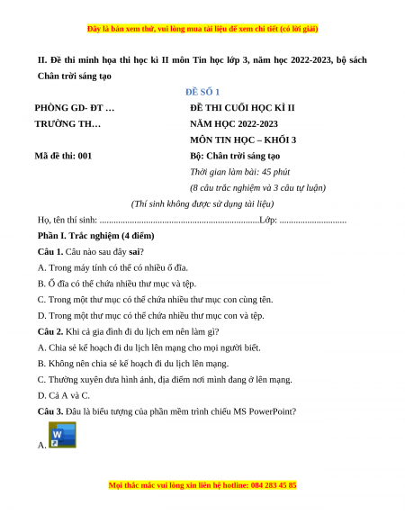II. Đề thi minh họa thi học kì II môn Tin học lớp 3, năm học 2022-2023, bộ sách
