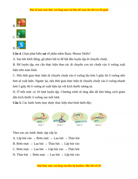 Câu 5. Các bước bơm mực được thực hiện như hình dưới đây:
