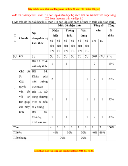 - Tailieugiaovien.com.vn giới thiệu 4 đề cuối kì 2 gồm đầy đủ ma trận và lời giải chi tiết môn Tin học lớp 4 Kết nối tri thức mới nhất năm 2024 nhằm giúp Giáo viên có thêm tài liệu tham khảo ra đề thi Tin học lớp 4.