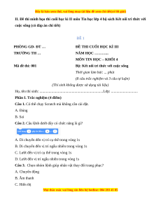 MÔN TIN HỌC – KHỐI 4 Mã đề thi: 001