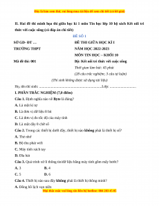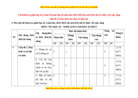 2 đề kiểm tra giữa học kì 1 môn Tin học lớp 10 năm học 2022-2023 bộ sách Kết nối tri thức với cuộc sống