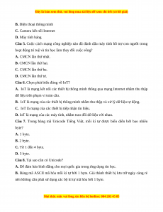 Câu 1. Định nghĩa nào về Byte là đúng? A. Là một kí tự
