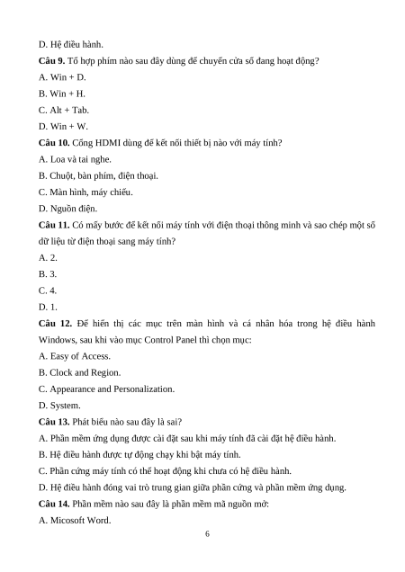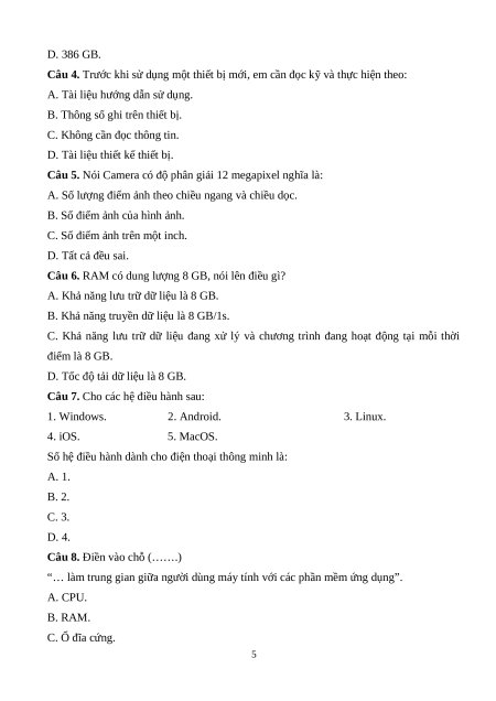 Câu 3. Máy tính có ổ cứng SSD gắn sẵn trong máy tính có dung lượng 128 GB, dung