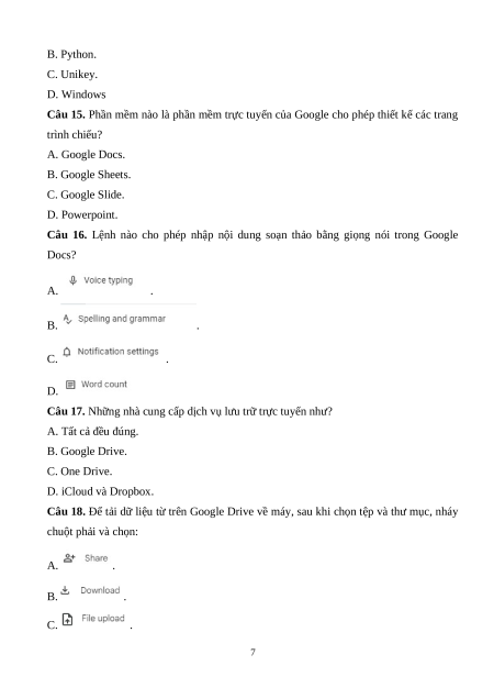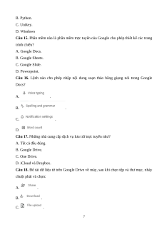 công nghệ thông thông minh điểm) tin và truyền 7,5 % thông.) 3. Khái quát về 2 1 3 (0,75 Hệ điều hành. điểm) 4. Thực hành với các thiết bị 2 1 3 số. 1 5. Phần mềm 20 % ứng dụng và 4 2 2 1 (2 dịch vụ phần 1 điểm) mềm. 27.5% 1. Lưu trữ trực Chủ đề C. Tổ 1 2 1 4 (3,5 tuyến. chức lưu trữ, điểm) 2 tìm kiếm và 2. Thực hành 7, 5%