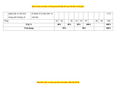 kĩ thuật số có đạo đức và 1.5 đ trong môi trường số văn hóa Tổng 2đ 2đ 3đ 1đ 1đ 1đ 4đ 6đ 10đ Tỉ lệ % 40% 30% 20% 100% 100% Tỉ lệ chung 70% 30% 100%