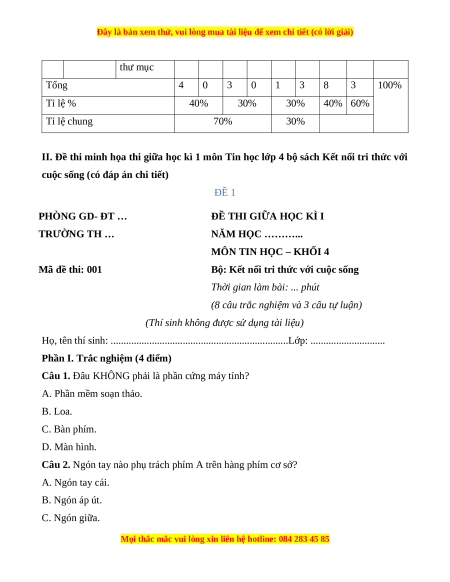 - Tailieugiaovien.com.vn giới thiệu 4 đề giữa kì 1 gồm đầy đủ ma trận và lời giải chi tiết môn Tin học lớp 4 Kết nối tri thức mới nhất nhằm giúp Giáo viên có thêm tài liệu tham khảo ra đề thi Tin học lớp 4.