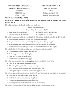 Môn: Lịch sử và Địa lí -----ooo----- Lớp: 5 ĐỀ THI SỐ: ….