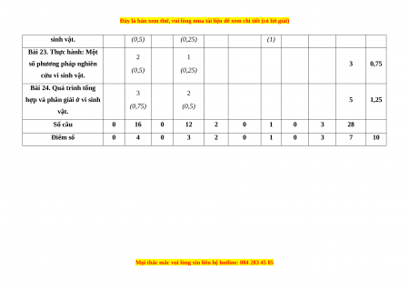hợp và phân giải ở vi sinh 5 1,25 (0,75) (0,5) vật. Số câu 0 16 0 12 2 0 1 0 3 28 Điểm số 0 4 0 3 2 0 1 0 3 7 10