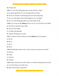 Câu 8: Để phân giải nucleic acid, vi sinh vật cần tạo ra enzyme nào sau đây? A. Protease. B. Lipase. C. Nuclease. D. Amylase.