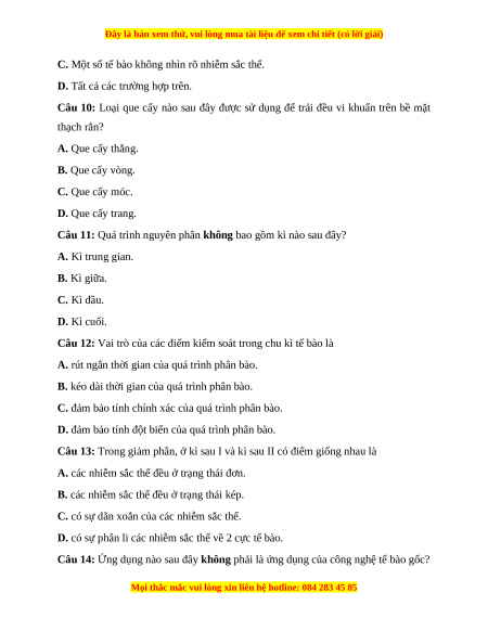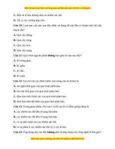 Câu 4: Sử dụng mẫu vật là hoa hành có thể quan sát được quá trình nào sau đây? A. Giảm phân. B. Quang hợp. C. Nguyên phân.