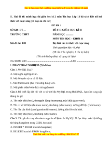 I. PHẦN TRẮC NGHIỆM (7,0 điểm) Câu 1. MySQL là gì?