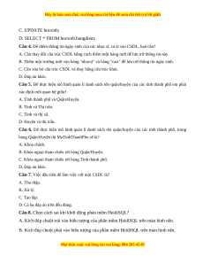 ngoài. Bài 21 Thực 30% hành cập nhật và 2 2 1 4 1 (3,0 truy xuất dữ liệu điểm) các bảng. Bài 22 Thực 20% hành cập nhật dữ 2 2 4 (2,0 liệu có tham điểm) chiếu. Bài 23. Thực 30% hành truy xuất 2 2 1 4 1 (2,0 dữ liệu qua liên điểm) kết bảng. Bài 24. Thực 7,5 % hành sao lưu dữ 2 1 3 (0,75 liệu. điểm) Tổng 16 12 2 1 28 3 100% Tỉ lệ % 40 30 20 10 (10 Tỉ lệ chung 70 30 điểm) Lưu ý: