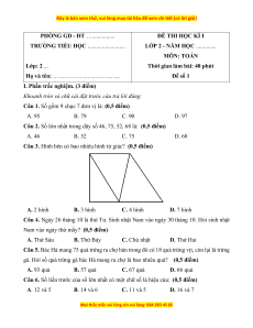 Bộ 40 đề thi cuối kì 1 Toán lớp 2 Kết nối tri thức có đáp án