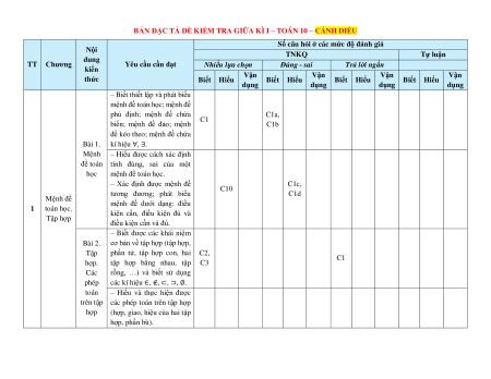 BẢN ĐẶC TẢ ĐỀ KIỂM TRA GIỮA KÌ I – TOÁN 10 – CÁNH DIỀU
