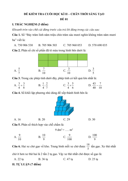 ĐỀ KIỂM TRA CUỐI HỌC KÌ II – CHÂN TRỜI SÁNG TẠO ĐỀ 01