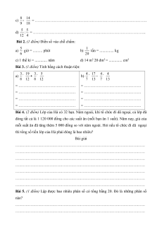 Bài 2. (1 điểm) Điền số thích hợp vào chỗ chấm: a) 5 giờ = . . . . . phút