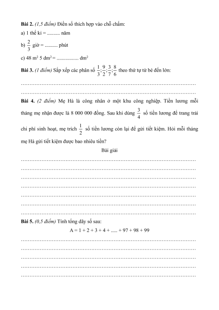 Bài 3. (1 điểm) Sắp xếp các phân số 1 9 3 8
