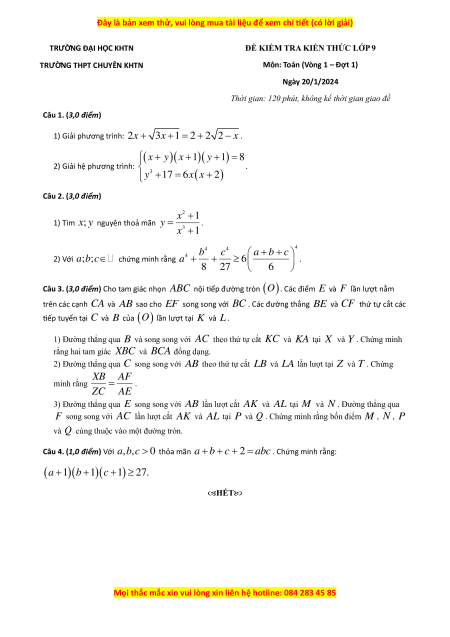 Môn: Toán (Vòng 1 – Đợt 1) Ngày 20/1/2024