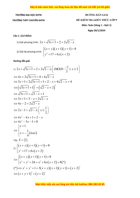 TRƯỜNG ĐẠI HỌC KHTN HƯỚNG DẪN GIẢI