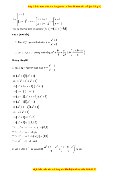 x + + x − ) ( 3 1 1 x + ) 1 (x − ) ( 3 1 x + ) 1 (x − )( 2 x + x + ) ( 3 1 1 x + ) 1 ( 3 x − ) ( 3 1 x + ) 1 ( 3 x + − ) ( 3 1 2 x + ) 1 − ( 3 2 x + ) 1 ( 3 x + ) 1 Ư (−2) ( 3 x + ) 1 1 ; 2 TH1. 3 x +1 = 1 ( ; x y) = (0; ) 1 TH2. 3 x + 1 = 1 − (loại) TH3. 3 x +1 = 2 ( ; x y) = (1; ) 1 TH4. 3 x + 1 = 2 − (loại) 4 4 4 4 a + b + c