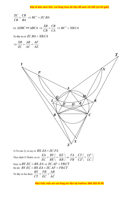 2) Đường thẳng qua C song song với AB theo thứ tự cắt LB và LA lần lượt tại Z và T . Chứng XB AF minh rằng = . ZC AE