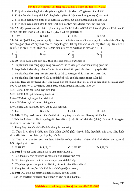 Câu 96: Hiệu suất sinh thái là Trang 2/13