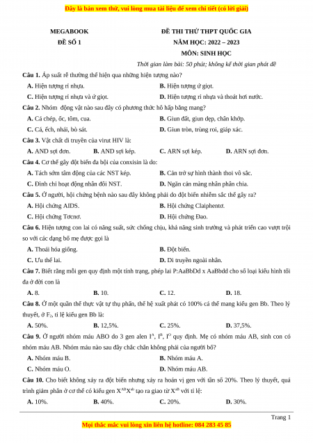 - Bộ 25 đề thi thử THPT Quốc gia Sinh học - sách Megabook