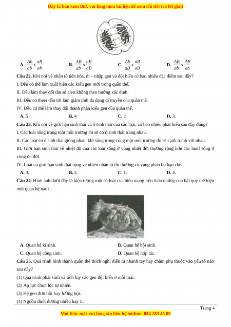 Câu 16. Tập hợp nào sau đây không được xem là một quần thể sinh vật? Trang 2