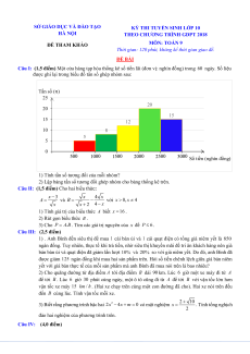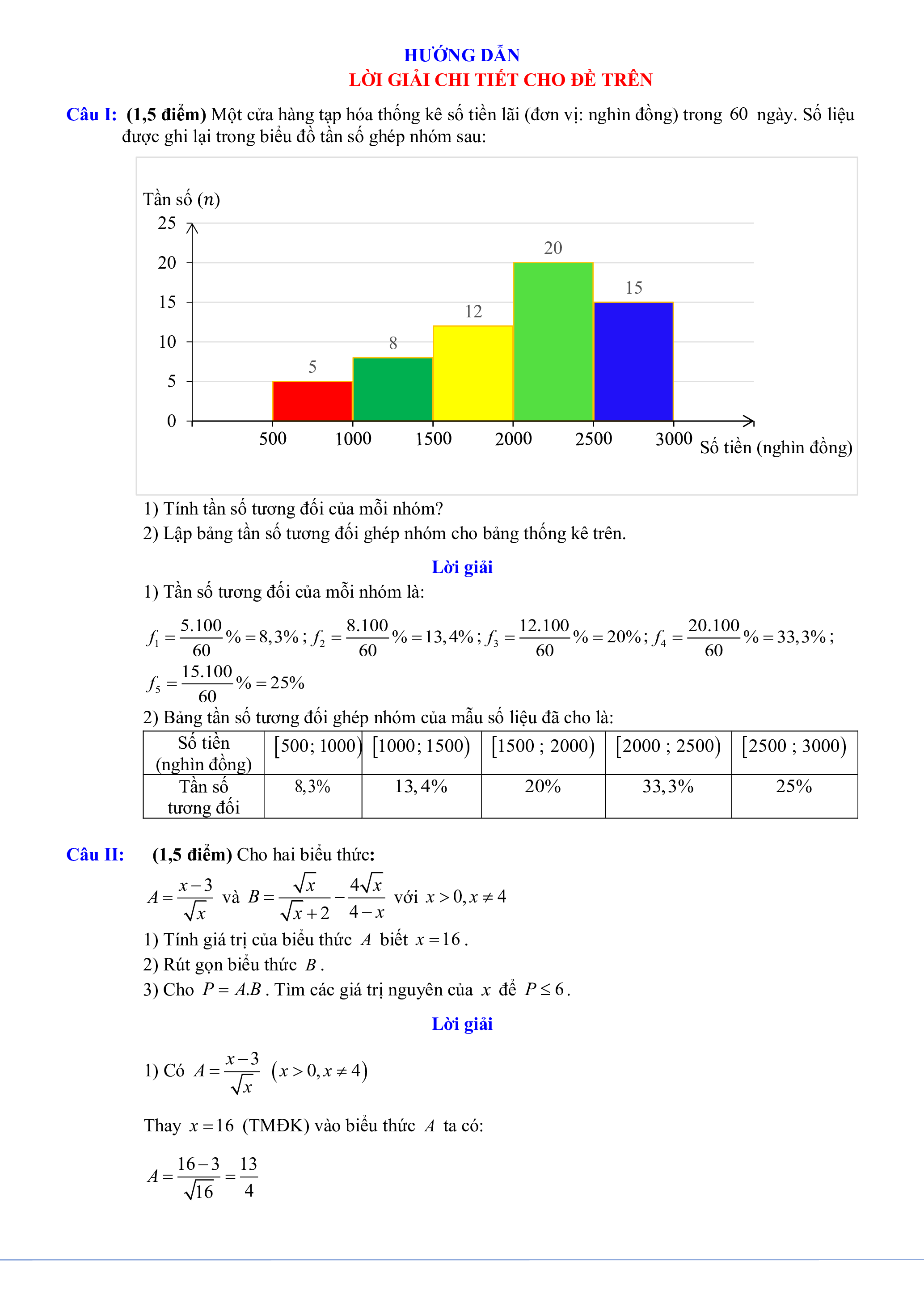 Câu I: (1,5 điểm) Một cửa hàng tạp hóa thống kê số tiền lãi (đơn vị: nghìn đồng) trong 60 ngày. Số liệu