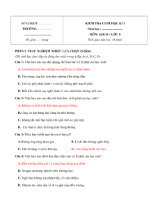 MÔN: GDCD – LỚP: 8– NĂM HỌC: .............................. Đề 1 (KNTT)