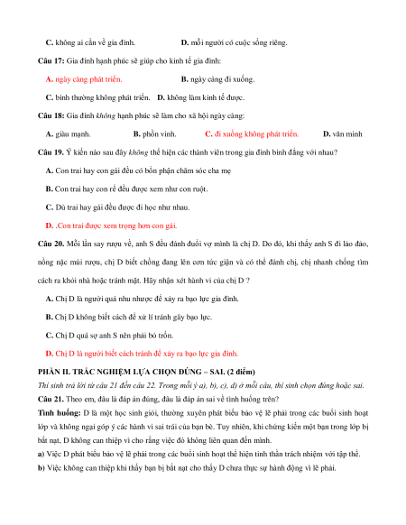 Câu 16: Gia đình hạnh phúc thì mỗi thành viên trong gia đình sẽ: