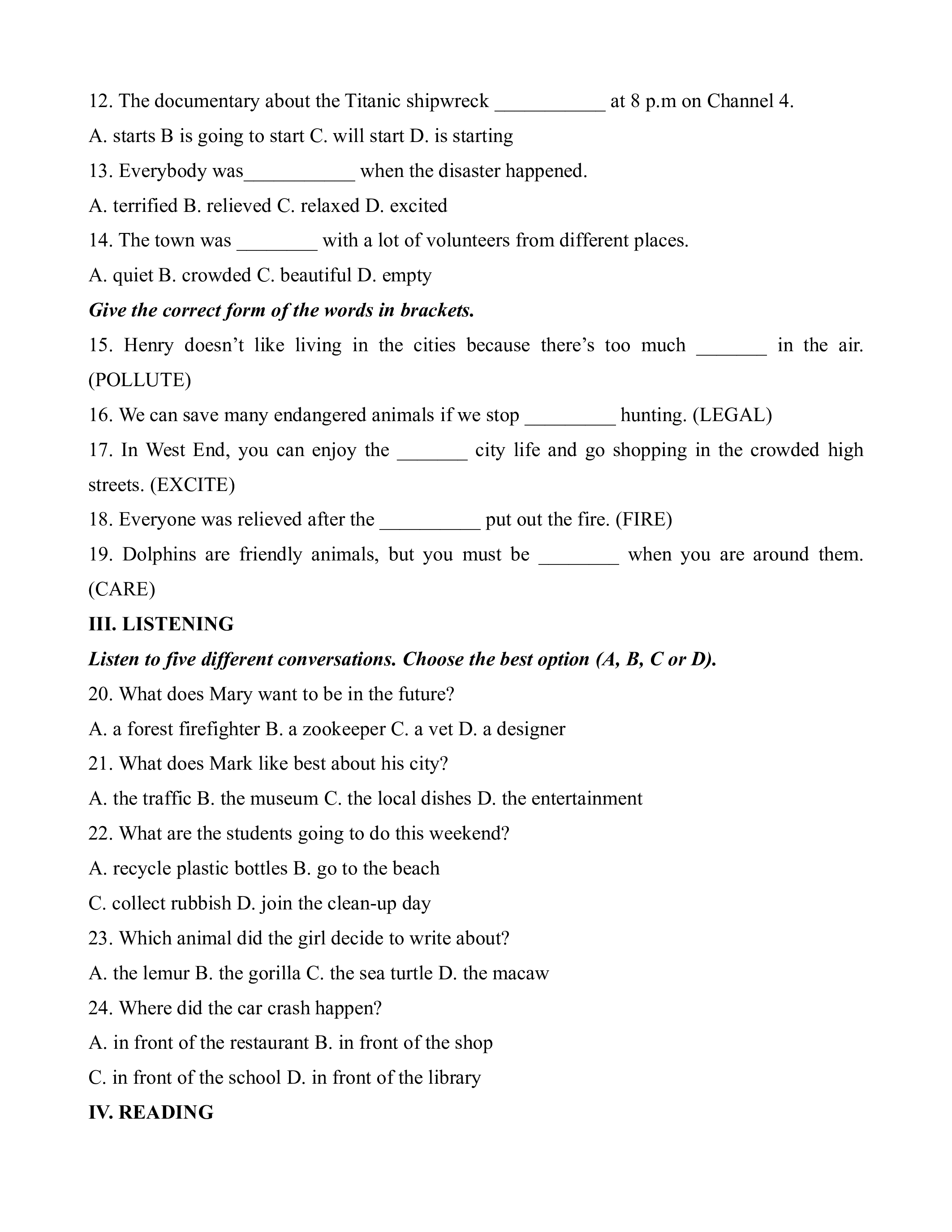 Bộ 5 đề thi Cuối kì 1 Tiếng Anh 8 Right on có đáp án