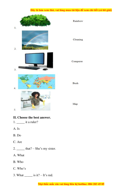 II. Choose the best answer. 1. _____ it a ruler? A. Is B. Do C. Are