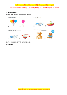 ĐỀ KIỂM TRA TIẾNG ANH PHONICS SMART HỌC KÌ 1 – ĐỀ 1 A. LISTENING