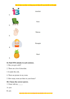 II. Find ONE mistake in each sentence. 1. Has => have 2. are => is 3. It => It’s 4. picture => pictures 5. room => rooms