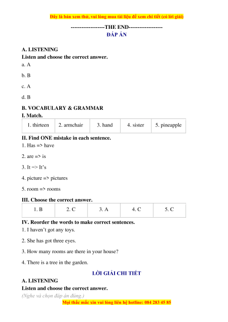 -------------------THE END------------------- ĐÁP ÁN A. LISTENING