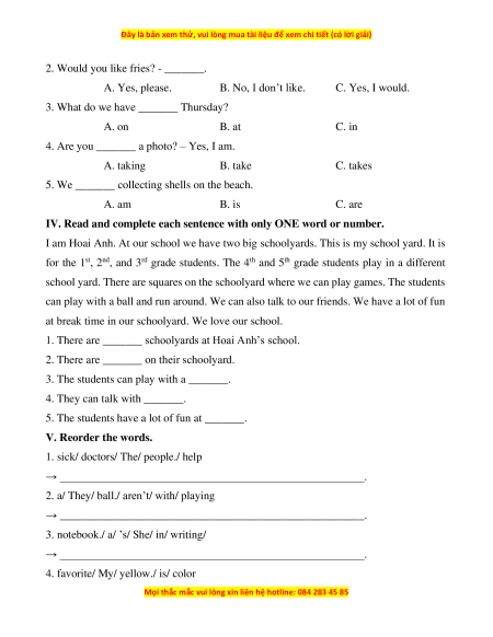 1. There are _______ schoolyards at Hoai Anh’s school.