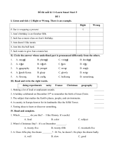 I. Listen and tick (√) Right or Wrong. There is an example. Right Wrong