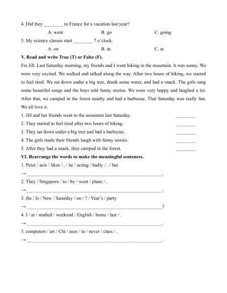 1. Jill and her friends went to the mountain last Saturday. ________