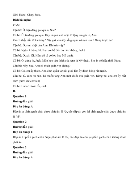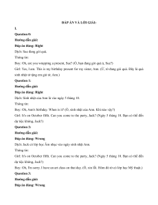 sinh nhật tớ tặng em gái tớ, Ann.) Question 1: Hướng dẫn giải: Đáp án đúng: Right