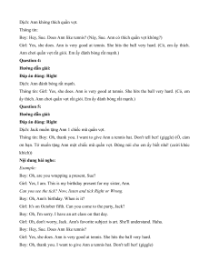 ơn bạn. Tớ muốn tặng Ann một chiếc mũ quần vợt. Đừng nói cho em ấy biết nhé! (cười khúc khích)) Nội dung bài nghe: Example: