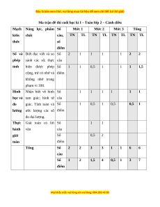 Ma trận đề thi cuối học kì I – Toán lớp 2 – Cánh diều
