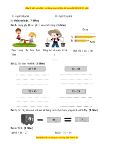 Câu 2. Kết quả tính 50 + 20 – 7 là: (0,5 điểm) A. 43 B. 53 C. 63 D. 33