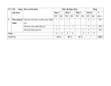 Mức độ nhận thức Tổng kiến thức Mức 1 Mức 2 Mức 3 Số CH % TN TL TN TL TN TL TN TL điểm 1