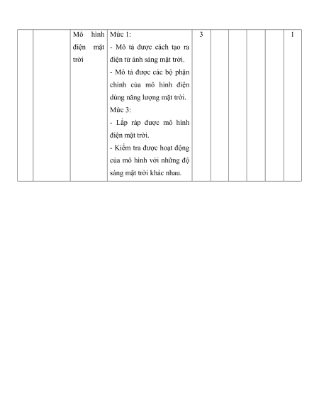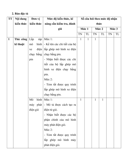 kiến thức kiến thức năng cần kiểm tra, đánh thức giá Mức 1 Mức 2 Mức 3 TN TL TN TL TN TL 1 Thủ công Lắp ráp Mức 1: 1 1 1 kĩ thuật
